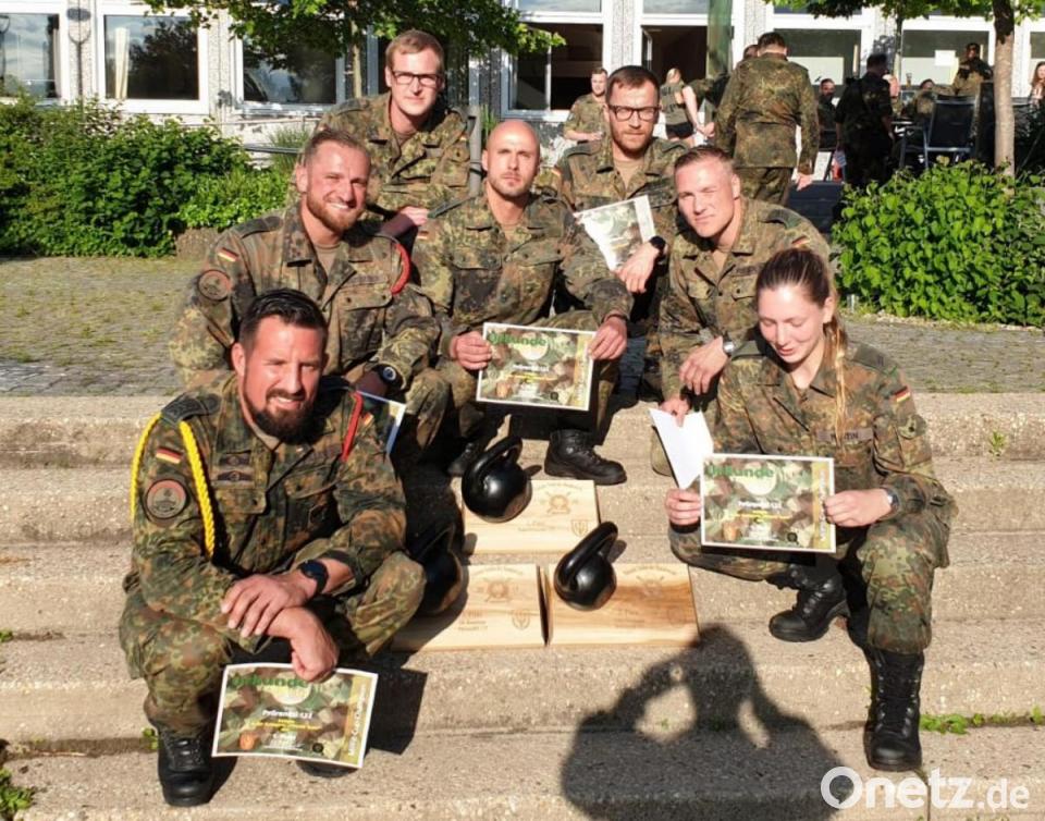 Unter den 24 Mannschaften und Einzelstartern aus allen militärischen Bereichen war auch das Panzergrenadierbataillon 122 aus Oberviechtach vertreten. Bei dem Wettbewerb mussten neben vielen anderen Aufgaben Hindernisse umschwommen, Kanister geschleppt und Stolperstellen überlaufen werden. Herausforderungen ganz nach dem Geschmack der Soldaten des Panzergrenadierbataillons 122, deren Schlachtruf "Dran, drauf, drüber" lautet. Dementsprechend schnitt das Team aus Oberviechtach auch ab. In der Mannschaftswertung belegten die Oberviechtacher Platz eins. Nicht genug. In der Einzelwertung gingen gleich die Plätze eins, zwei und vier an die Soldaten der Grenzlandkaserne. Der Kommandeur des Bataillons, Oberstleutnant Andreas Bleek, zeigte sich gleichermaßen stolz und beeindruckt von der strammen Leistung seiner Soldaten.