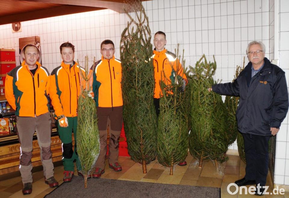 Zum Weihnachtsfest stehen die Nadelbäume dann in den Zimmern von Mitbürgern, die sich vielleicht diese Ausgabe nicht unbedingt leisten können. Im Vorfeld konnten die Bedürftigen über die Tafel die gewünschte Größe des Baumes angeben. Diese – übrigens allesamt Fichten – wurden dann in den beiden Ausgabestellen in Oberviechtach und Neunburg kostenlos verteilt. Ausbildungsleiter Anton Plödt kam dazu mit drei Auszubildenden zur Ausgabestelle in der Nabburger Straße, um zusammen mit dem Vorsitzenden Friedrich Keller die Fichten, die in den Größen 1,50 und 2 Meter abgeschnitten wurden, abzuladen.