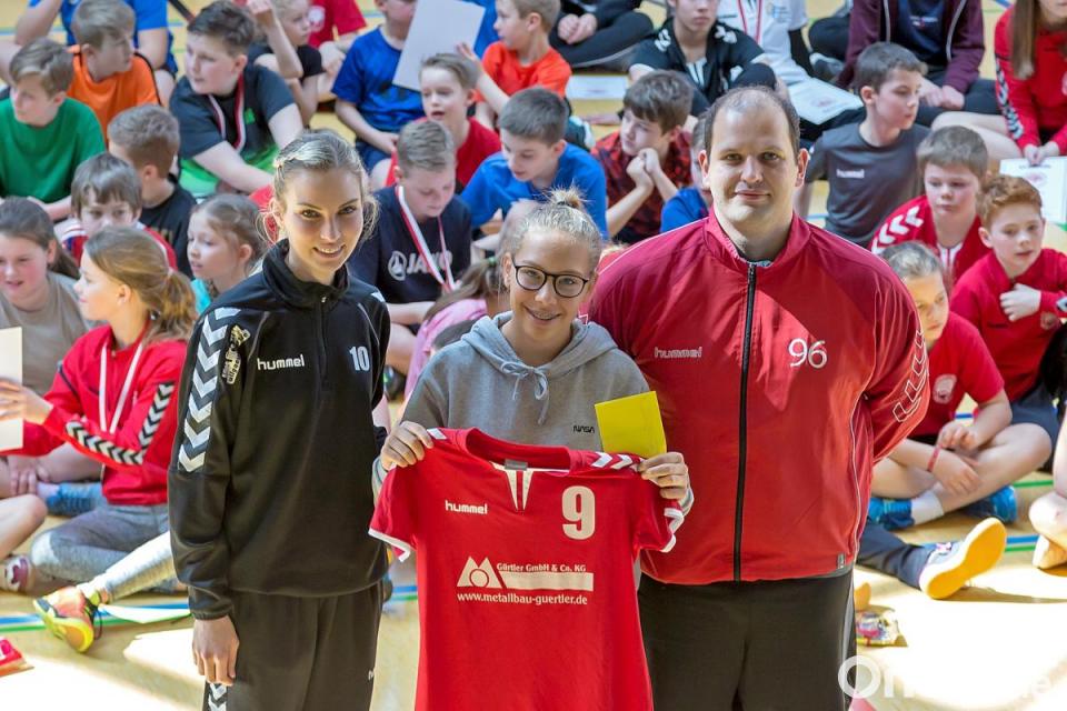 Beim Jugendtag des Handballvereins verliehen Vorsitzender Michael Lang und Jugendleiterin Corinna Wild an das Nachwuchstalent ein Trikot der weiblichen C-Jugend als Erinnerung an die gemeinsame Zeit mi ihrer Mannschaft. Außerdem überreichten sie ein kleines Präsent und wünschten Paula Landgraf alles Gute für die weitere Zukunft.