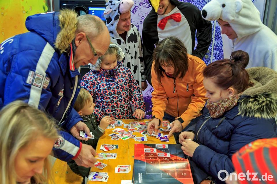 Auch ältere „Kinder“, meist weit jenseits der 30, standen da bereits Schlange um als einer der ersten ein Heft für sich oder den Nachwuchs zu ergattern. „Mama, ich habe dich im ersten Päckchen gezogen“ konnte man schon nach kurzer Zeit vernehmen. Im Eingangsbereich des Einkaufsmarkts war die Möglichkeit zum Tauschen gegeben und die Sticker gleich einzukleben. Die jungen Spieler und Werbeträger des Stickerstar-Banners und Werbe-Posters hatten den ganzen Vormittag alle Hände voll zu tun, die Starterpakete und weitere Päckchen zu verkaufen. So mancher Sammler freute sich auch über drei oder vier zusätzliche Päckchen, die am Glücksrad zu gewinnen waren. Und wer viel Glück hatte, ergatterte sogar Burger und Menüs vom Foodtruck der Wunderland-Köche.