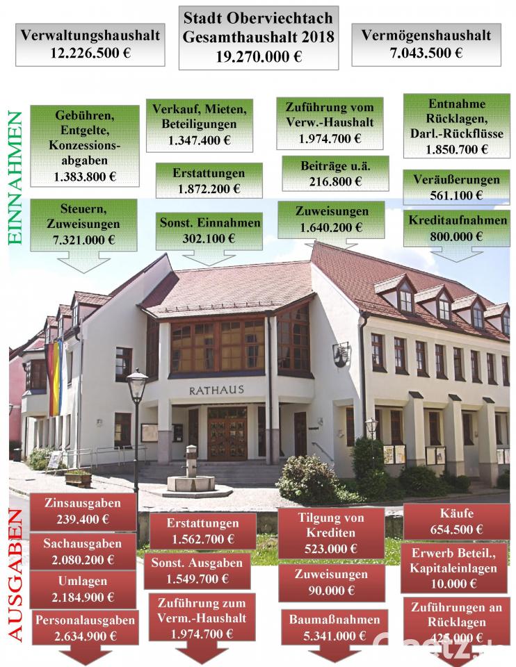 Der Haushaltsentwurf schließt im Verwaltungshaushalt mit 12 226 500 Euro und im Vermögenshaushalt mit 7 043 500 Euro ab. Das Gesamtvolumen beträgt 19 270 000 Euro. Die Kreditaufnahmen sind auf 800 000 Euro festgesetzt. Es errechnet sich eine Netto-Kreditaufnahme von 306 000 Euro (ohne Schwarz-Stiftung). Der Schuldenstand wird am Jahresende rund 9,76 Millionen Euro betragen. Verpflichtungsermächtigungen sind mit 3,58 Millionen Euro eingestellt. Unverändert bleiben die Hebesätze der Grundsteuer (310 Prozent) und der Gewerbesteuer (320 Prozent). An den Vermögenshaushalt können laut Entwurf 1,84 Millionen Euro zugeführt werden. Für Grundsteuer A und B fallen Einnahmen von 472 000 Euro an, für die Gewerbesteuer 1,6 Millionen Euro. Der Gemeindeanteil an der Einkommenssteuer beträgt 2,4 Millionen und an Schlüsselzuweisungen gibt es 1,51 Millionen Euro. Für Investitionen erhält die Stadt Zuschüsse von 2,64 Millionen Euro.