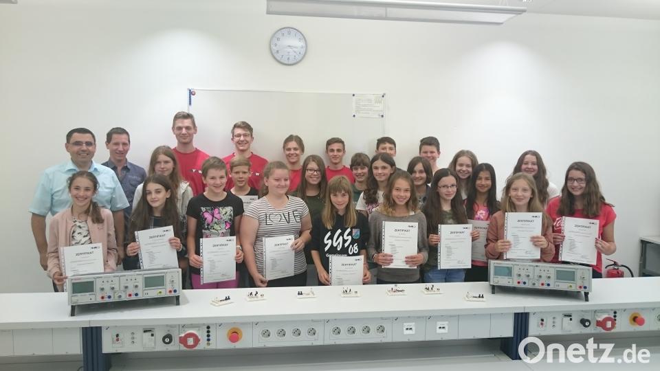 Die Preisträger der Wissenschaftsmesse "Virtual Science Fair 2017" des Ortenburg-Gymnasiums durften sich auf einen etwas anderen "Schultag" freuen. Für die 17 Jungforscherinnen und drei Jungforscher der 7. Jahrgangsstufe stand nicht Mathematik oder Englisch auf dem Stundenplan, sondern Elektronik. Durchgeführt wurde der Kurs von TGW Software Services aus Teunz, ein herausragender Kooperationspartner der Schule. Das Förderangebot mit externen Partnern ist eine wichtige Maßnahme des Gymnasiums als MINT-Excellence-Center.