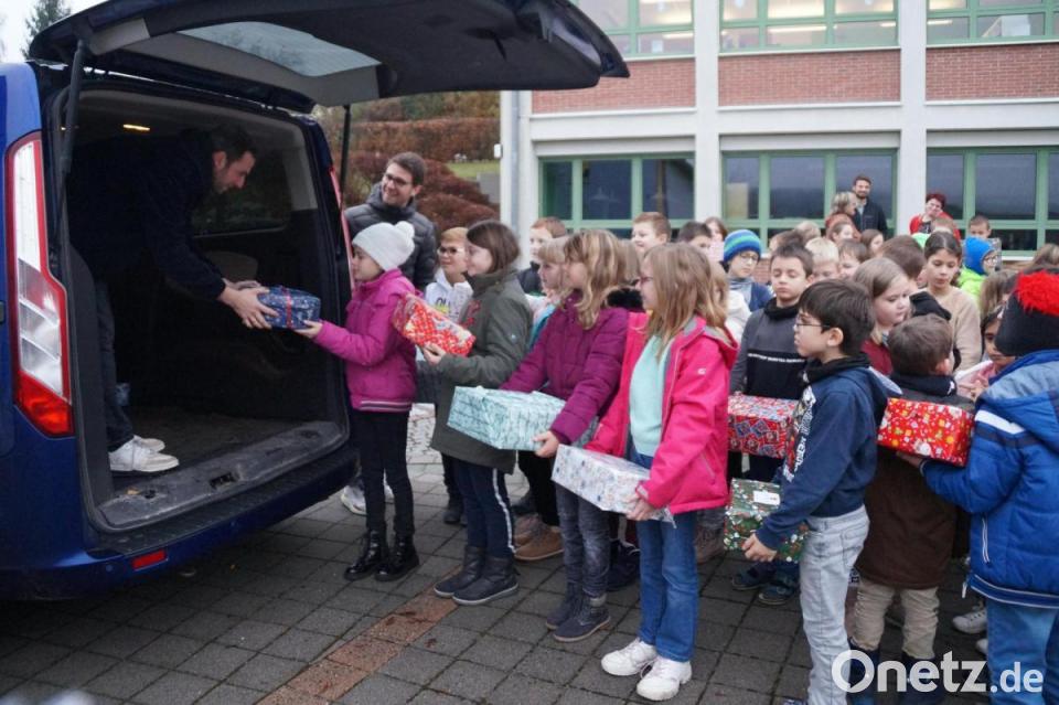 Kinder der Eisenbarth-Grundschule packen 150 Weihnachtspäckchen für Hilfskonvoi