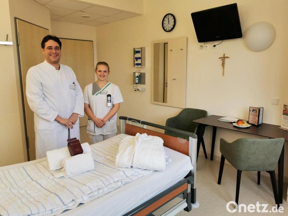 Ob als Privatpatient, als Selbstzahler oder über eine private Zusatzversicherung: In einem der beiden, knapp 20 Quadratmeter großen "Komfort plus"-Zimmer stehen den Patienten ein modernes Komfortbett, Flat-Screen-TV (mit Sky TV), Nachttisch mit gefülltem Kühlschrank/Minibar, Besucherecke, gebührenfreies Telefon und WLAN, eine stets gefüllte Minibar und ein modernes Bad zur Verfügung. Zudem werden individuelle Wünsche erfüllt: Zeitschriften, Getränke, Obst, Kaffee und Kuchen am Nachmittag.