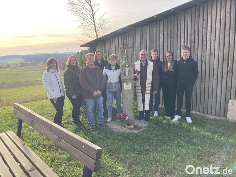 Hermann Deyerl hat am Kramerl-Bierl in der Hanau ein neues Marterl eingeweiht. Der Sitzbereich zum Innehalten besteht bereits schon länger, Infotafeln zu Oberviechtachs Patenstädte hat er kürzlich angebracht. Und nun wurde auch das Marien-Marterl feierlich eingeweiht. Auf dem Schild unter dem Bild steht: „Unserer lieben Frau zum Dank. In unserer Familie ist keiner ernstlich krank“, steht auf dem Schildchen unter dem Bild, auf dem die Gottesmutter ihren Mantel über zwei Kinder ausbreitet. Die Einweihung, die Pfarrer Alfons Kaufmann an Hermann Deyerls 70. Geburtstag vornahm, erfüllte einen lang gehegten Wunsch des Jubilars. Die Inschrift auf dem Marterl zeigt die Dankbarkeit der Familie, dass sie von Schicksalsschlägen verschont blieb. Maria wacht nun mit kirchlichem Segen über die Familie und die Besucher, die den neu hergerichteten Sitzbereich in der Hanau passieren.