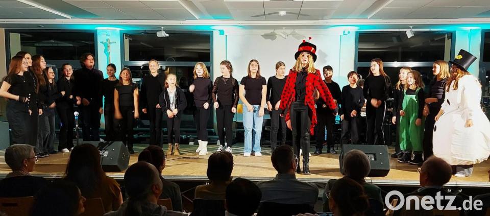 Für „Buntes und Tierisches“ sorgten die Junior-Big-Band (Welcome to the Jungle) und die OGO-Musical-AG unter der Leitung von Tobias Sutrich. Mit dem „Glückskäfer“ und „Es lebe die Freundschaft“ servierte das Ensemble in einer erfrischenden Performance einen Vorgeschmack auf die komplette Aufführung von Peter Maffays Musical im Sommer. „Lichtblicke“ war die letzte Programmeinheit überschrieben, bei der das Lehrerensemble wieder alle Register zog. Beim hebräischen Volkslied „Hava Nagila“ überraschten einige Lehrerinnen sogar mit einer Tanzeinlage.