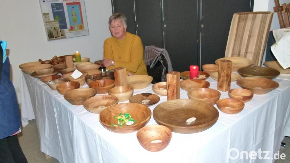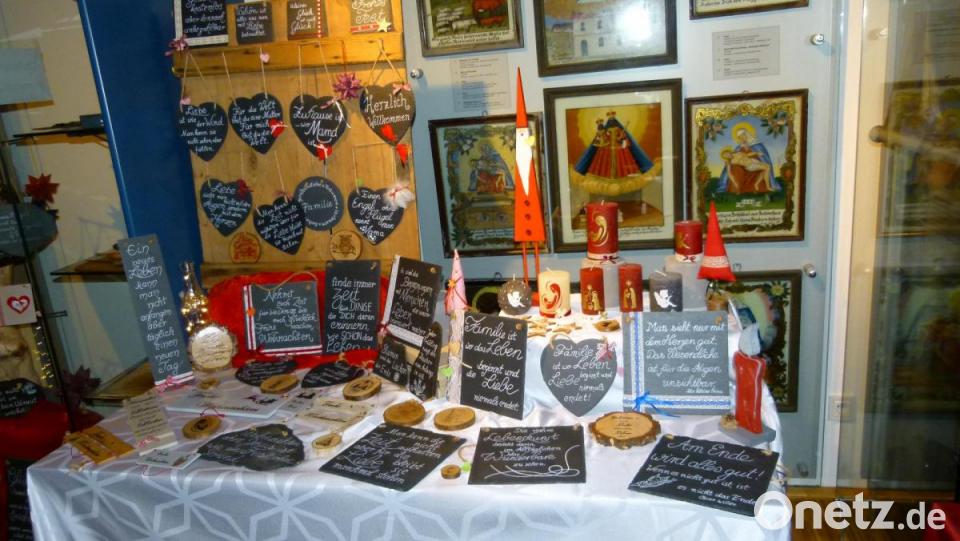 Die Palette an kreativen und künstlerischen Werkstücken reichte von gravierten Gläsern, kalligrafisch beschrifteten Urkunden über Produkte aus Holz, Metall, Filz und Stoff bis hin zu Klosterarbeiten aus verschiedenen Materialien. Da waren weihnachtliche Gestecke, Stickwaren, Glückwunschkarten und Puppenkleider zu entdecken. Selbstgemachte Lebkuchen, Gaumenfreuden aus heimischen Früchten sowie Erzeugnisse aus Heilkräuter ergänzten die Vielfalt. Hobbyschnitzer Herbert Bauer präsentierte eine selbstangefertigte Krippe.