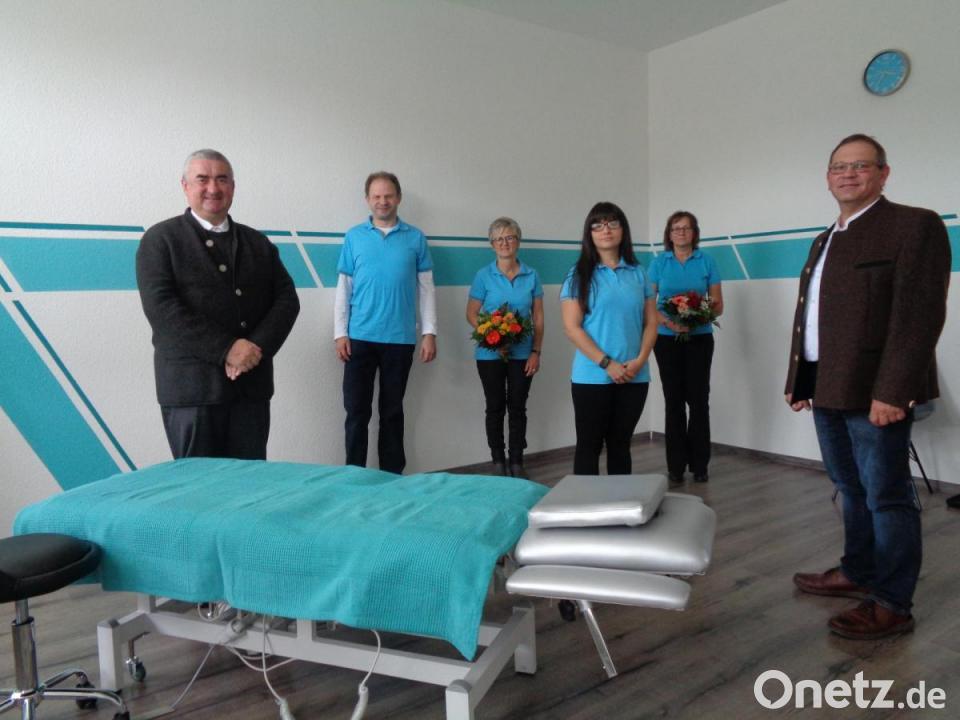 Zur Einweihung ihrer neuen Physiotherapiepraxi begrüßten Martin Ebenhöch und Majda Hildebrand Dekan Alfons Kaufmann, den Zweiten Bürgermeister der Stadt Oberviechtach, Egbert Völkl, Familienangehörige und Freunde. In einem kleinen Rückblick schaute Martin Ebenhöch auf die Entwicklung zurück. Die beiden kennen sich schon seit fünf Jahren. 2020 erfüllten sie sich den Wunsch einer eigenen Praxis im Obergeschoss von Inter Sport, Zum Bahnhof 8. Bei seinen Segensgebeten ging Dekan Alfons Kaufmann von der Bibelstelle "Ich war krank und ihr habt mich besucht" aus. Die Sorge um die Gesundheit sei auch Christenpflicht. Nach den Fürbitten um Genesung und Linderung segnete der Geistliche die Behandlungsräume einzeln. Für Egbert Völkl ist die Eröffnung eine Bereicherung für die ganze Stadt, da ständig Bedarf an Physiotherapeuten herrsche. Er beglückwünschte im Namen der Stadt die beiden Therapeuten zu diesem Schritt und wünschte ihnen viel Erfolg. Im Anschluss bedankte sich Martin Ebenhöch bei seinen Helfern, die sich in die Planung und beim Renovieren, Dekorieren und Putzen mit einbrachten. Besonders dankte er Stefan Hildebrand, der für das Handwerkliche und die Wandgestaltung zuständig war. Christiane Koch wird für die Anmeldung zuständig sein, Ulrike Ferstl unterstützt die Therapeuten. Die Praxis ist barrierefrei vom Parkdeck im Hof erreichbar.