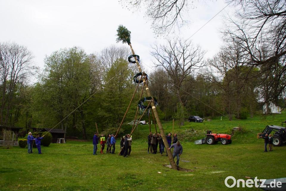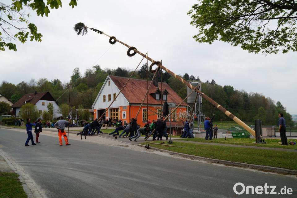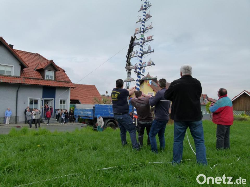 In Gleiritsch stellte die Katholische Landjugend einen Maibaum auf dem Platz beim Haus der Vereine auf. Unter Regie von Georg Roth wuchteten die Mitglieder, tatkräftig unterstützt von Helfern aus anderen örtlichen Vereinen, die 23 Meter lange Fichte, die tags zuvor antransportiert und geschmückt worden war, in die Höhe. (akp)