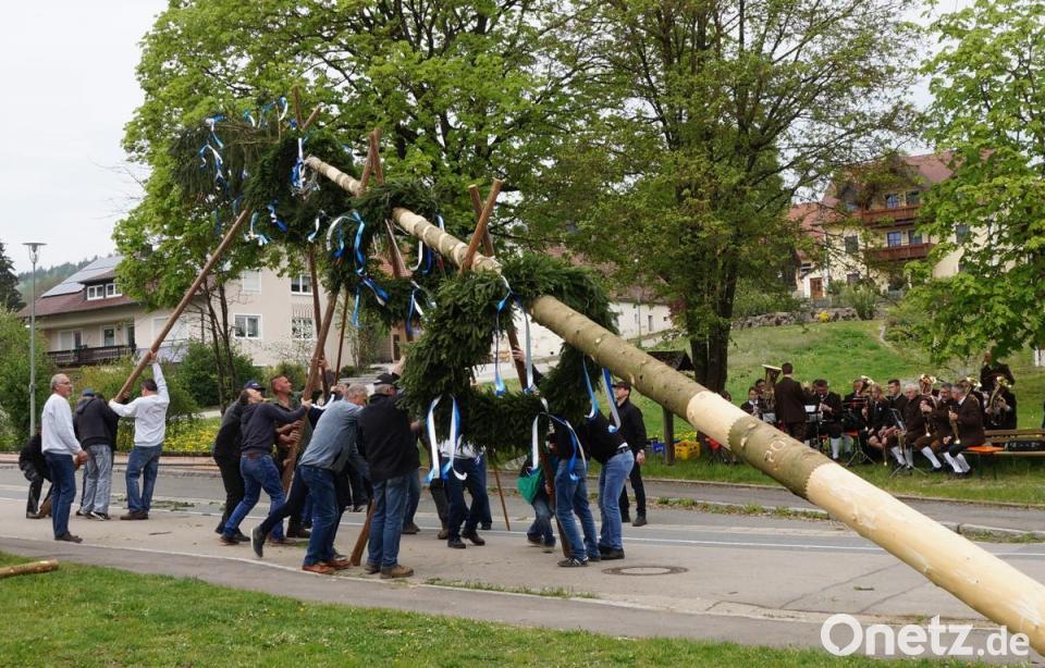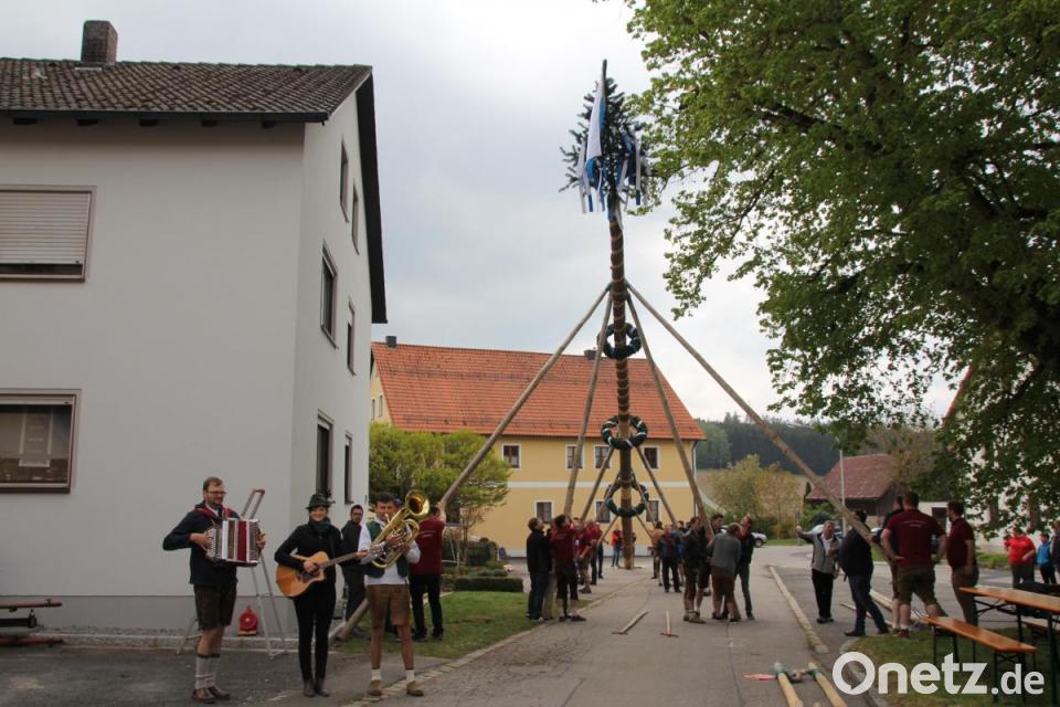 Mit gemeinsamem „Ho – auf“ hievten in Bach die Männer der Feuerwehr den mit drei Kränzen geschmückten Maibaum Meter um Meter nach oben. Musikalisch wurde die Aktion, die viele Zuschauer verfolgten, von der Blaskapelle Dieterskirchen unterhalten. Bei durchwachsenem Wetter wurde noch lange gefeiert und der Mai begrüßt. (weu)