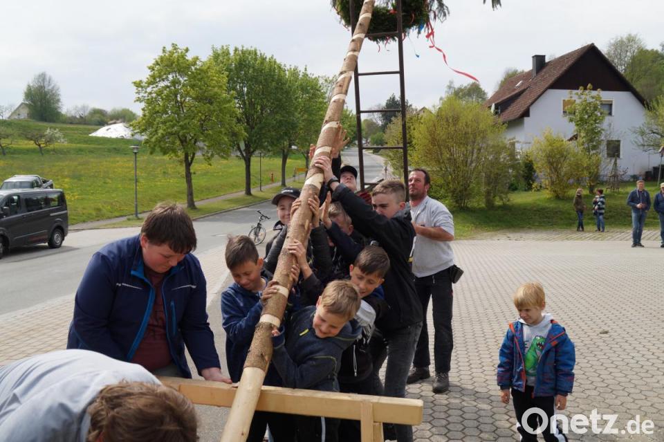In Thanstein stellten kräftige Helfer aus sieben Ortsvereinen unter dem Kommando von Wolfgang Schmidt den Maibaum im Areal zwischen Schützenheim und Feuerwehrhaus auf. Wie auch schon im vergangenen Jahr wurde im Anschluss durch die Buben und Mädchen des Ortes ein Kindermaibaum aufgestellt. Die Versorgung der Helfer und Zuschauer hatte die KLJB übernommen. Die richtige Höhe des Maibaums schätzte Rosi Blaschke, und Wolfgang Schwab ersteigerte sich später den Maibaum. (rkp)
