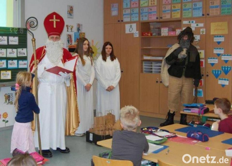 Nachdem der "hohe Herr" wohlwollende Worte zu den Kindern gesprochen hatte, revanchierten diese sich mit Gedichten und Liedern. Danach wurden Säckchen an die Schüler verteilt, die im Handarbeitsunterricht verziert worden waren. Gefüllt wurden die über 200 Nikolaus-Gaben von Mitgliedern des Elternbeirats mit Äpfeln, Nüssen, Mandarinen und Schoko-Nikoläusen. Rektorin Christine Schneider bedankte sich mit Süßigkeiten beim Team der SMV.