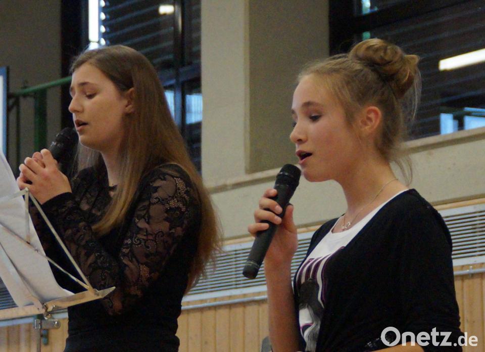 Einen schwungvollen Auftakt zum zweiten Teil bildete die Bläsergruppe mit einer flotten Frühjahrspolka und dem „Amazing Grace“. Mit dem Trommelstück „Africa“ brachte der Musikkurs 7/8 afrikanisches Flair in die Mehrzweckhalle. Sehr souverän meisterten Veronika Lehner und Alina-Chiara Dornbusch ihren Gesangsauftritt. Die beiden Solistinnen sangen „Little do you know“ und „King“. Mucksmäuschenstill war es in der Halle, als das „Halleluja“ von Leonard Cohen erklang.