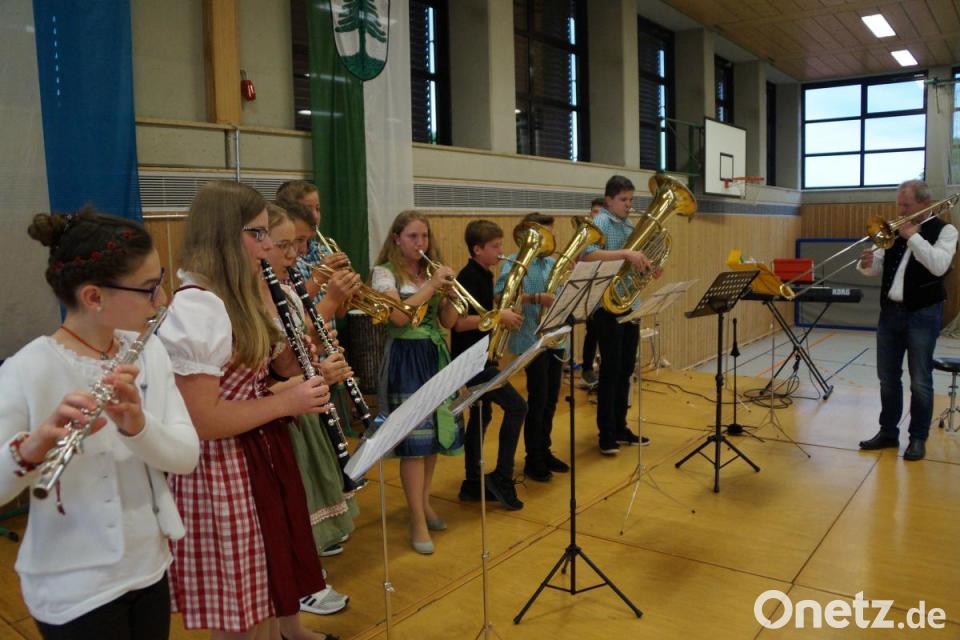 Zusammen mit der Bläsergruppe „servierten“ die fünften Klassen das bekannte „Rehragout“ und sangen Geschichten von der „Oiden Kath“. Sie kamen nicht um eine Zugabe herum, die sie mit dem „Hulapalu“ von Andreas Gablier auch einlösten. „Was man auf einem Skikurs alles lernt“, kommentierte Rektor Winderl diese drei Lieder, der danach allen Mitwirkenden und besonders den Schülern dankte. „Es war fantastisch und mit Musik, Tanz und Sketch sehr abwechslungsreich“, so der Schulleiter. „Sie können stolz sein auf diese Kinder. Unterstützen auch Sie diese Talente auf verschiedensten Gebieten, so wie es die Schule tut“, appellierte er an die Eltern. Mit dem „Muss i denn zum Städtele hinaus“ beendete die Bläsergruppe dieses Schülerkonzert.