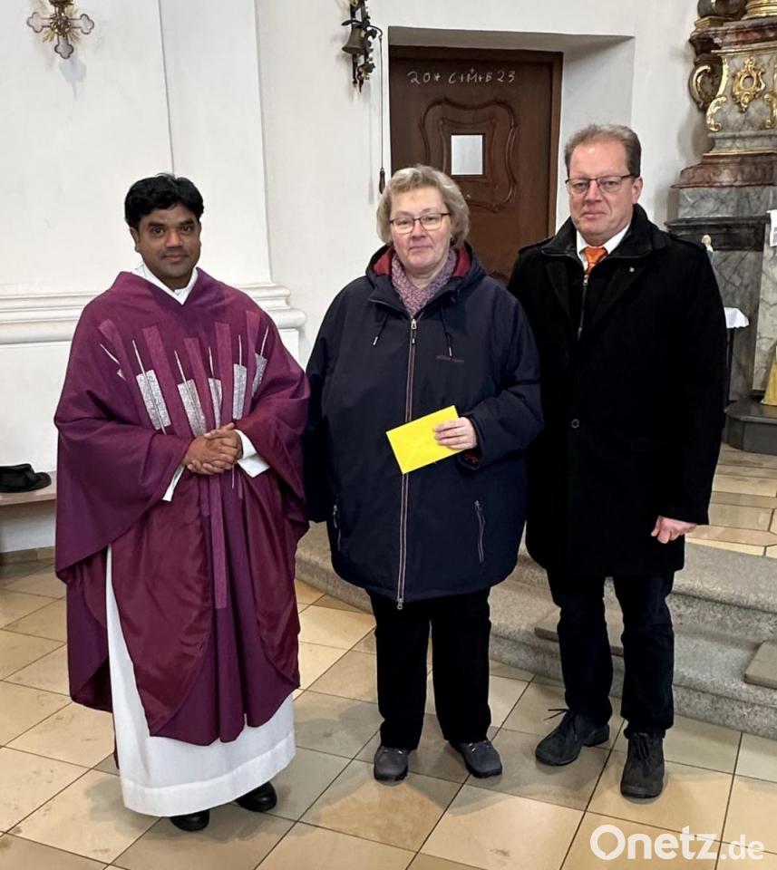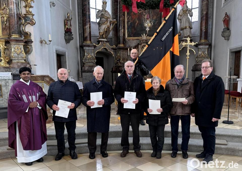 Nach der heiligen Messe wurden Mitglieder für ihre langjährige Zugehörigkeit zur Kolpingsfamilie geehrt. Ihnen überreichte Vorsitzender Thomas Schwingl eine Urkunde. Die acht geehrten Mitglieder sind: Ägidius Preiß (für 70 Jahre), Ludwig Berger (für 65 Jahre), Johann Hösl und Konrad Wolf (für 60 Jahre), Maria und Paulinus Lesser (für 40 Jahre) sowie Sebastian und Stefan Schießl (für 25 Jahre). Darüber hinaus dankte Schwingl Lisa Prögler für ihre mehr als 30-jährige Tätigkeit als Schriftführerin sowie für ihr ebenfalls jahrzehntelanges Engagement in der Kolpingbühne. Den neuen Kaplan Chinna Chennaiah Dola hieß Schwingl offiziell als Präses der Oberviechtacher Kolpingsfamilie willkommen.