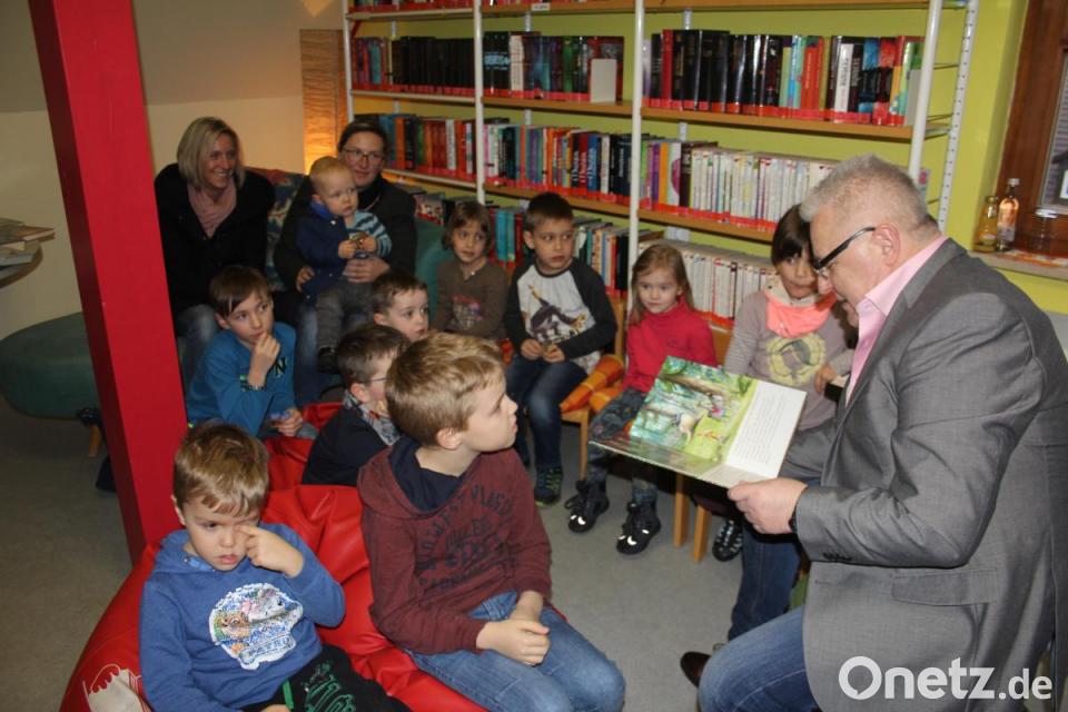Mit Gummibärchen und Süßigkeiten hatte Forster die Kinder gleich auf seine Seite gebracht, und im Anschluss schilderte der Lesepate die Abenteuer des Räubers Donnerpups. Und seine Bande muss ausgerechnet an einem Freitag den 13. durch den gefährlichen Donnerwald. Zwar fällt der Hexe Simsebim das Rezept für einen Zaubertrank ein, doch das misslingt ihr an diesem Unglücks- und Pechtag gründlich, und das beschert auch den Räubern große Probleme. Wer wissen möchte, wie die Geschichte ausgeht, kann sich das Buch in der Stadtbücherei ausliehen.