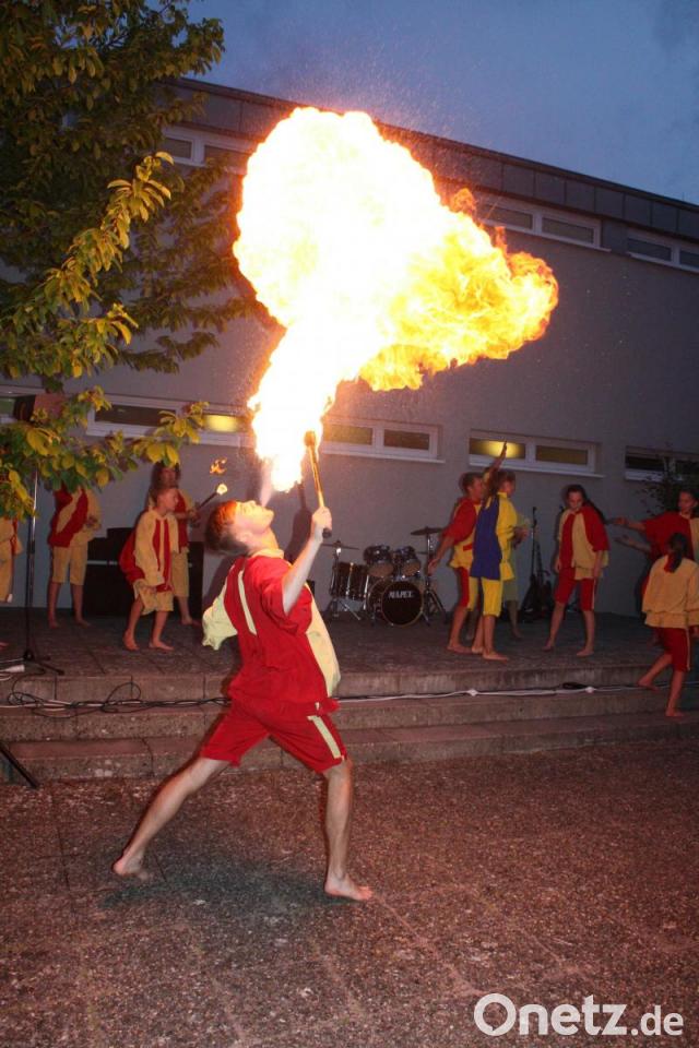 Das Treffen von Jubiläumsjahrgängen ehemaliger Schüler stand am Abend beim Sommerfest im Mittelpunkt. Die Schulabgänger von 2009, 1999, 1989 und 1979 waren neben dem Abiturjahrgang von 1974 besonders stark vertreten. Letztere erinnerten sich, wie sie vor 45 Jahren ihr Zeugnis der Hochschulreife erhalten hatten. Die Verbindung zum OGO riss nicht ab, denn viele Ehemalige sind Mitglied des Fördervereins Ortenburger, der für die Kontaktpflege verantwortlich zeichnet. Der neue Vorsitzende Manfred Klug aus Eslarn schenkte an diesem Abend zusammen mit seinem Team einen selbst gebrauten Zoigl aus. Der Elternbeiratsvorsitzende Hans Steinsdorfer sorgte mit seinen Vorstandsmitgliedern für die Verpflegung, ebenso wie Caterer Gillitzer. Die musikalische Unterhaltung im Innenhof übernahm die Ehemaligenband und die OGO-Rockband. Höhepunkte im abendlichen Programm waren dann aber die Auftritte der Tanzgruppe "Grün-Weiß" und der schuleigenen Gaukler-Truppe unter Leitung von Michael Teplitzky und Johannes Balletshofer.