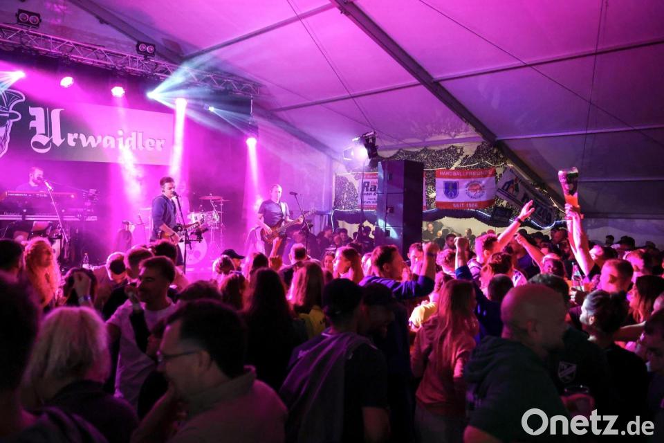 Ab 21 Uhr übernahm dann die Partyband d'Urwaidler das Zepter. Schon nach wenigen Liedern war die Tanzfläche gut gefüllt und die Besucher standen auf den Bänken. Egal ob volkstümliche Weisen, Lieder der Neuen Deutschen Welle oder auch Hardrock von AC/DC – die fünf Vollblutmusiker hatten für jeden Geschmack etwas dabei. Wer sich vom schweißtreibenden Treiben auf der Tanzfläche erholen wollte, fand an der Pils- und Weizenbar, der Cocktailbar oder der Schnapsbar eine gute Gelegenheit dazu. Neben der bewährten Festküche von Josef Vogl boten die HV-Damen erstmals Crêpes in verschiedenen Variationen an. Nach einer für manche kurzen Nacht startete am Samstag das Sportgeschehen ab 9.30 Uhr auf dem grünen Rasen.