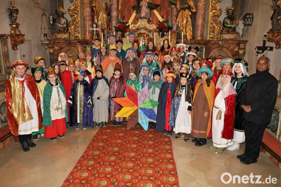 Im Sternsinger-Aussendungsgottesdienst der Pfarreiengemeinschaft Altendorf-Weidenthal-Gleiritsch stellten die Sternsinger den Kinderschutz in den Mittelpunkt und gestalteten einen großen Stern aus den wichtigsten Kinderrechten. Pater Johnson Varakaparambil segnete die Sternsinger für diese wichtige, weltweit größte Aktion von Kindern für Kinder. (sgs)