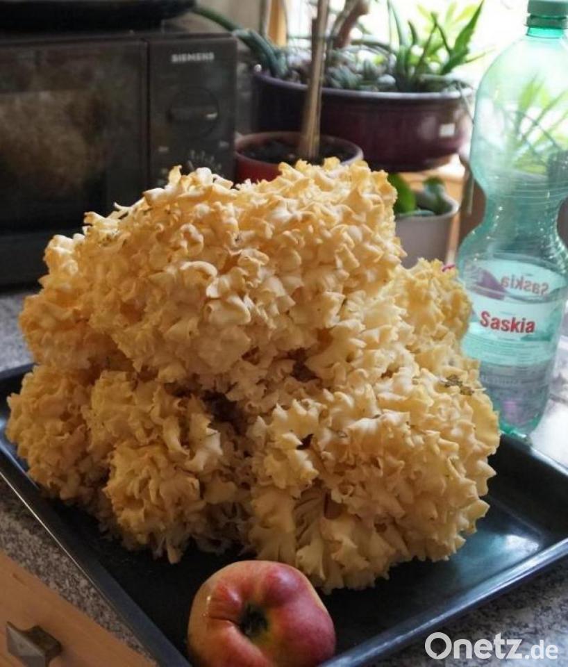 Nicht ganz in erster Reihe dabei steht die Krause Glucke, die gerne an Kiefern wächst. Sie wird auch Fette Henne genannt. Mit Butter angedünstet, ist sie ein besonderer Gaumenschmaus. Ein besonderes Exemplar mit 40 Zentimetern Durchmesser entdeckte NT-Mitarbeiter Udo Weiß.