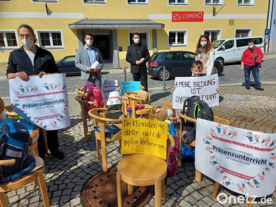 Kinder und Kultur seien die Verlierer der Pandemie, so das Stadtoberhaupt, das zusammen mit Landrat Thomas Ebeling die Elternaktion vor dem Schwarz-Brunnen besuchte. Auch der Landkreischef sprach sich für die inzidenzunabhängige Öffnung der Schulen aus und informierte, dass ab Montag die Grundschulen wieder zum Präsenzunterricht übergehen. Dieser sollte aber ein volles Vormittagspensum abdecken, da ansonsten die Eltern wiederum gefordert seien, so Alexander Ried.