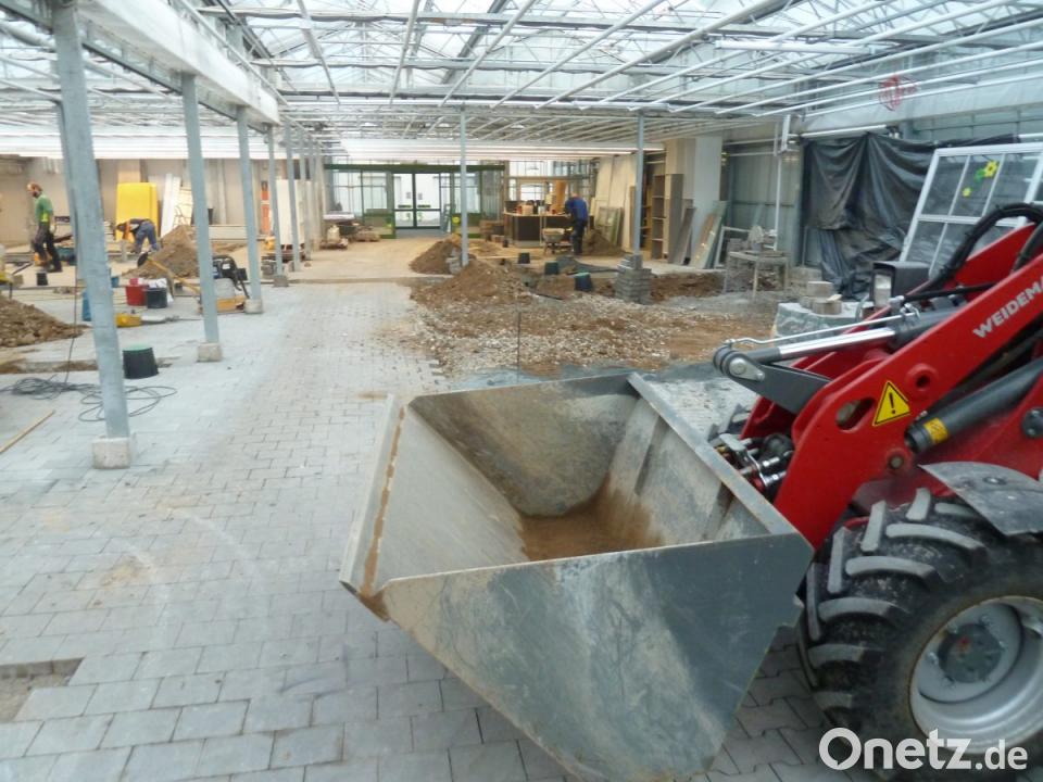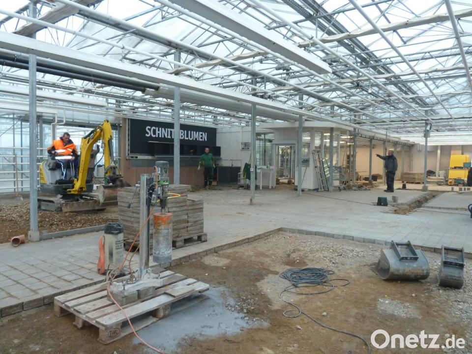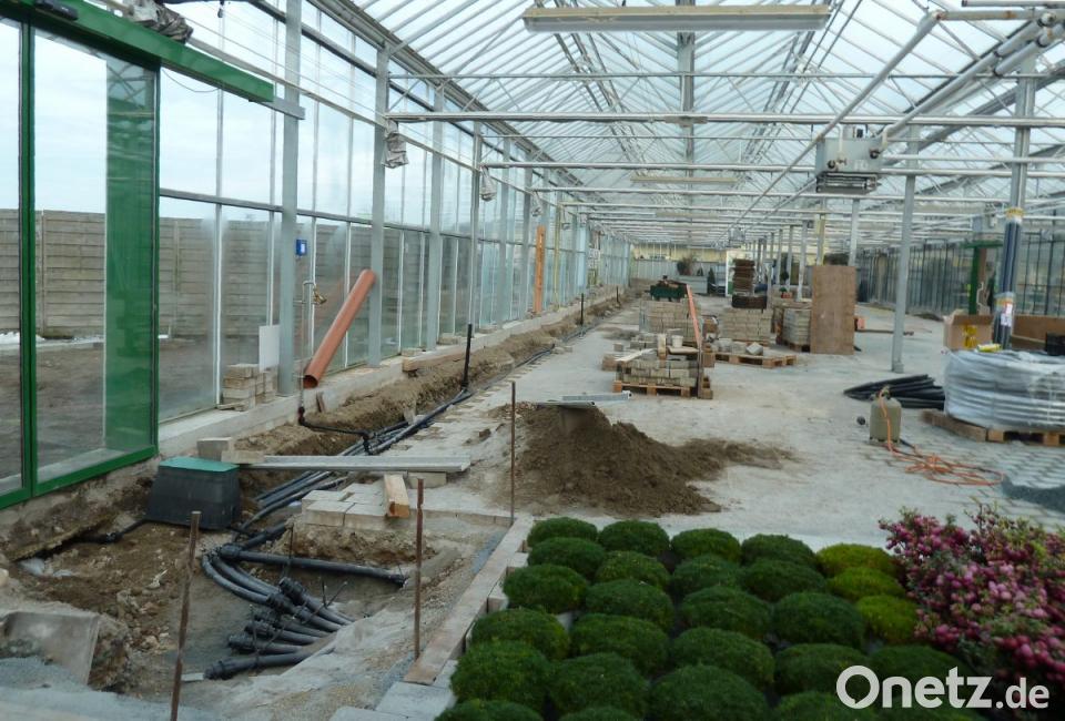 Das Floristik-Team hat sich derweil in der künftigen Beratungstheke für Pflanzenschutz niedergelassen. Die Firma Rabensteiner, ein Südtiroler Gewächshausbauer, hat 124 Meter an den Altbau "angedockt". Insgesamt erstreckt sich die Gärtnerei Baumer damit auf einer Länge von über 200 Metern, mit klimatisch verschiedenen Abteilungen. Während beim Venlo-Haus nur die Lüftungsklappen aufgehen, verwöhnt die Cabrio-Bauweise die Pflanzen mit einer Freiluftsituation. Der hintere Teil des Glashauses wird im Frühjahr und Sommer vom Ovigo-Theater in Beschlag genommen. "Florian Wein suchte eine Spielstätte und wir halfen gerne", sagt Ulla Baumer. Bei passendem Wetter wird es eine Open-Air-Vorstellung geben. Danach ziehen die Theaterleute wieder aus und der Platz wird als Pflanzen-Nachfülllager genutzt. Bei Baumer wird angekaufte Rohware auf riesigen Tischen weiter kultiviert. Mit diesem landwirtschaftlichen Produktionsteil bleibt das Center auch weiterhin eine Gärtnerei.
