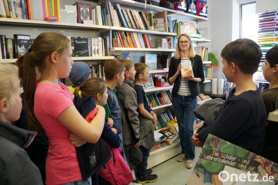 Zum "Welttag des Buches“ besuchten die Klassen 4a und 4b die Buchhandlung Blenz. Fachfrau Heike Hagl hatte einen interessanten Vortrag vorbereitet, den sie mit den Schülern erarbeitete. „Warum ist Lesen wichtig“, war der Impuls, zu dem die Kinder natürlich viel wussten. Weil man für den Beruf, zum Einkaufen, zur Orientierung im Straßenverkehr und für den gesamten Alltag des Lesens mächtig sein muss, nimmt sich die Stiftung Lesen diesem Bereich besonders an. Aber auch Stadt und Staat unterstützen das Lesen durch Bibliotheken, durch festgelegte Preise für Lesestoff, die das Überleben kleiner Buchhandlungen ermöglichen und einen verminderten Mehrwertsteuersatz von sieben Prozent bei Büchern.
