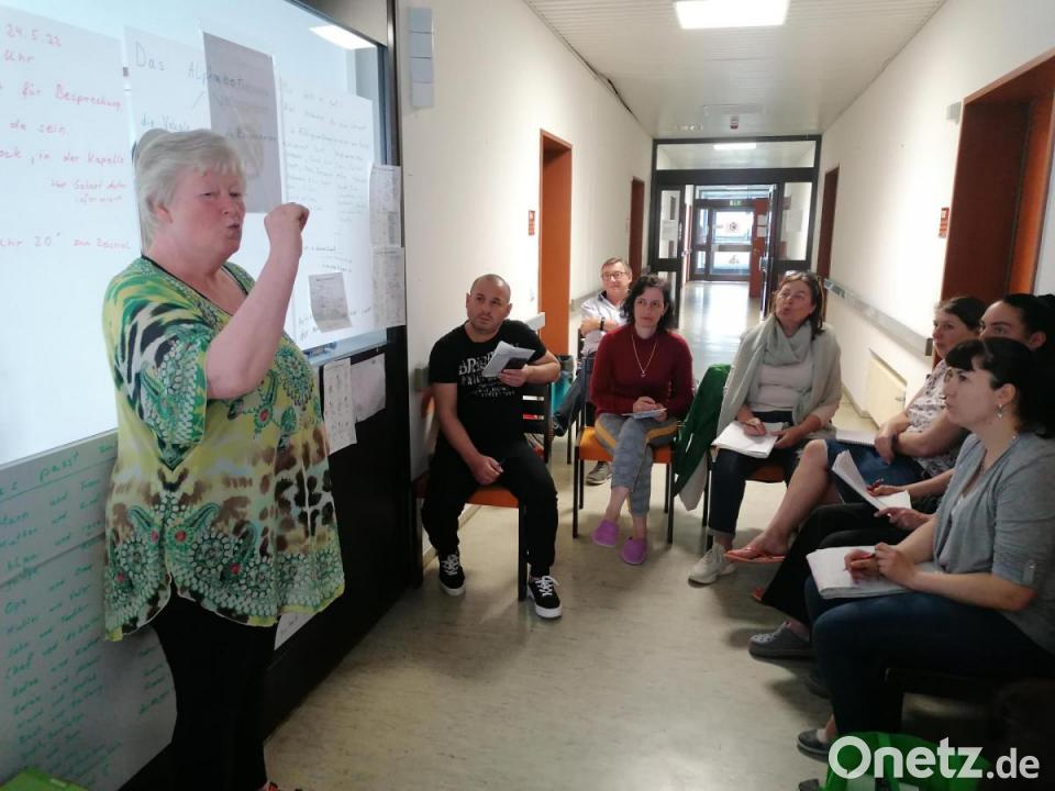 ![Mit deutlicher Mimik und Gestik macht Ositha Prögler (links) vor, wie deutsche Laute richtig ausgesprochen werden. Michael Hösl vom Volksbildungswerk Oberviechtach-Schönsee (hinten) folgt dem Unterricht beim Besuch aufmerksam. Bild: Winderl, Kristin [wrl]](https://www.onetz.de/f/ic/Detailed/articlemedia/2022/05/30/636ae6f5-959e-449c-89f6-3403b58d8239.jpg)