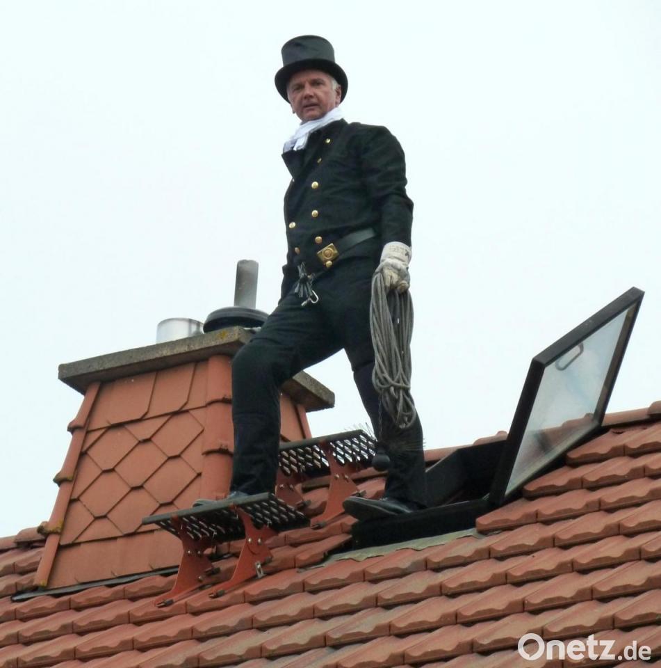 Wenige Tage nach der kirchlichen Segnung kommt Kaminkehrer Karl Winklmann (56) zum Pressegespräch in der neuen Redaktion von Oberpfalz-Medien am Marktplatz 24 vorbei. Natürlich in seiner Arbeitskleidung, dem schwarzen Kehranzug. Die kragenlose Jacke mit zweireihigen Knöpfen (Gold für Meister, Silber für Gesellen und Lehrlinge) nennt man Koller. Dazu kommt ein Gürtel mit Schnalle, an denen die Schlüssel für die Kamintüren baumeln. Statt der modernen Staubmaske knotet sich Winklmann das weiße Mundtuch um. Den Zylinder lässt er meistens zu Hause; er setzt lieber die praktischere Gesellen-Kappe auf. Früher galt: „Hohe Hüte für hohe Persönlichkeiten.“ Schließlich waren die bis Ende der 1950er-Jahre durch die Dörfer ziehenden Männer seit dem Mittelalter wichtig für den Feuerschutz.