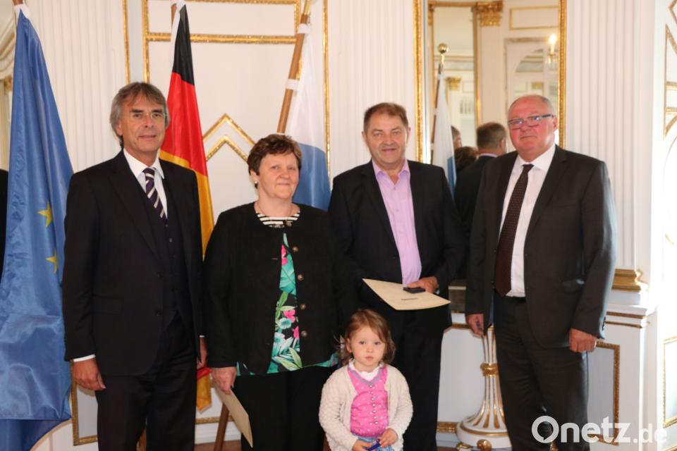 Zwei von ihnen, Christa und Martin Biegerl, stammen aus Oberviechtach. „Sie betreuen gemeinsam seit vielen Jahren Ihren pflegebedürftigen Sohn Bernhard mit großer Hingabe“, betonte Bartelt bei der Laudatio. Sieben Jahre lang hat das Ehepaar seinen Sohn täglich im Krankenhaus besucht, bis die beiden ihn dann 2013 nach Hause holten und dort seitdem liebevoll versorgen. „Menschen, die pflegen, brauchen Herz und Verstand sowie ein großes Engagement“, so Bartelt. Mit ihrem täglichen Dienst praktizierten sie die Grundwerte der Gesellschaft, was sehr große Anerkennung verdiene. Deshalb freue es ihn besonders, dem Ehepaar Biegerl die Pflegemedaille mit Dankurkunde, sowie die Grüße der ehemaligen Staatsministerin Emilia Müller übermitteln zu dürfen.