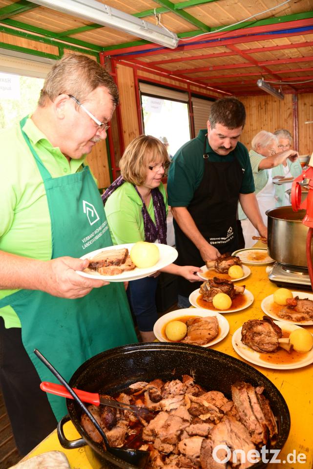 (bey) Bereits beim Frühschoppen versorgten sich die Besucher rechtzeitig mit den „Markerln“, um mittags gleich nach dem Öffnen der Jalousien an den Essensausgabeständen anstehen zu können. In einer Vielzahl von Brätern hatten die Köche der Siedler den Schweinshaxen und dem Schweinebraten die richtigen Temperaturen gegeben. Von den Gästen war dafür nur Lob zu hören.