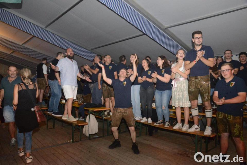 Am Samstagabend begeisterten die „Froschhaxn“ die Besucher. Die Band bot ein Programm mit vielen bekannten deutschen Hits. Viele der Gäste tanzten vor der Bühne oder die Gäste zogen in fast nicht enden wollender Schlange durchs Festzelt. Die Pilsbar abseits des Festzelte war dann für viele der Besucher eine Art Ruhekissen.