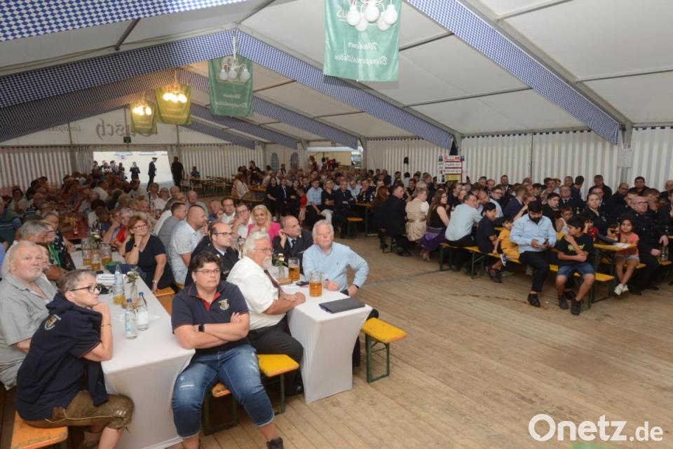 Herbert Pschierer und Sebastian Hartl luden am Freitagabend im Festzelt zu einer Zeitreise mit der Feuerwehr Oberwildenau ein. Nachdem die Blaskapelle Oberwildenau einige Musikstücke gespielt hatte, wurde schlagartig die Bühne freigemacht. Mehrere Wehrmitglieder brachten die Projektionswand auf die Bühne. Pschierer stellte die Verhältnisse bei der Feuerwehr vor über 100 Jahren vor. Damals habe es in den selbstständigen Gemeinden Ober- und Unterwildenau vor dem Jahr 1923 eine Pflichtfeuerwehr mit jeweils zwölf Männern gegeben. Viele kleine Anwesen bedeuteten eine hohe Brandlast. Am 23. November 1923 sei dann die Feuerwehr Oberwildenau gegründet worden. Als Gründungsmitglieder gingen Bürgermeister Georg Frischholz und Erster Kommandant Georg Nagler in die Geschichte ein. Nur ein Jahr später hat die Wehr unter schwierigsten wirtschaftlichen Verhältnissen das erste Gerätehaus gebaut und eine Grundausrüstung beschafft. Der Wehr zählte bereits 40 aktive Mitglieder.