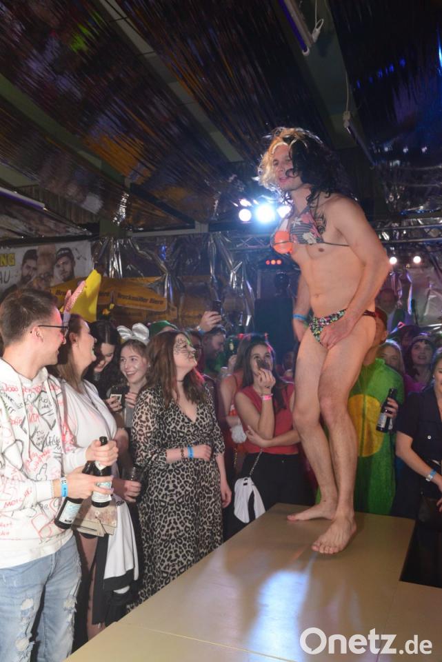 Dazu passten natürlich die Besucher, bis auf wirklich einzelne Ausnahmen aufwendig maskiert, manchmal gleich unkenntlich und vor allem in bester Stimmung. Da standen die bereits leeren Bierflaschen und die „Klopfer“ im Meterregal auf den Tischen. Denn damit das Durststillen schneller ging, wurden diese Getränke sinnvollerweise als „Meterware“ angeboten.