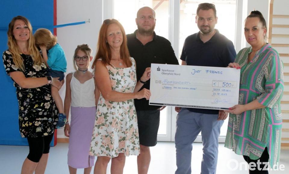 „Just Friends“ überreicht dem St.-Michaels-Kindergarten 500 Euro. Der St. Michaels Kindergarten „Haus der kleinen Hände“ steht für eine ganzheitliche Erziehung jedes einzelnen Kindes zu einem selbstständigen, weltoffenen, wertorientierten und ausgeglichenen Menschen, der die Natur als Geschenk betrachtet und mit offenen Augen erlebt. Großen Wert, so Leiterin Iris Widmann, werde auf die Gesundheitserziehung nach Sebastian Kneipp gelegt. Für den Vorstand von „Just Friends“ ein Faktor, ihm einen Teil des Erlöses aus ihrer 9.0-Fete vom April dieses Jahres zu spenden. Am Donnerstagabend wurde daher ein Scheck über 500 Euro überreicht.