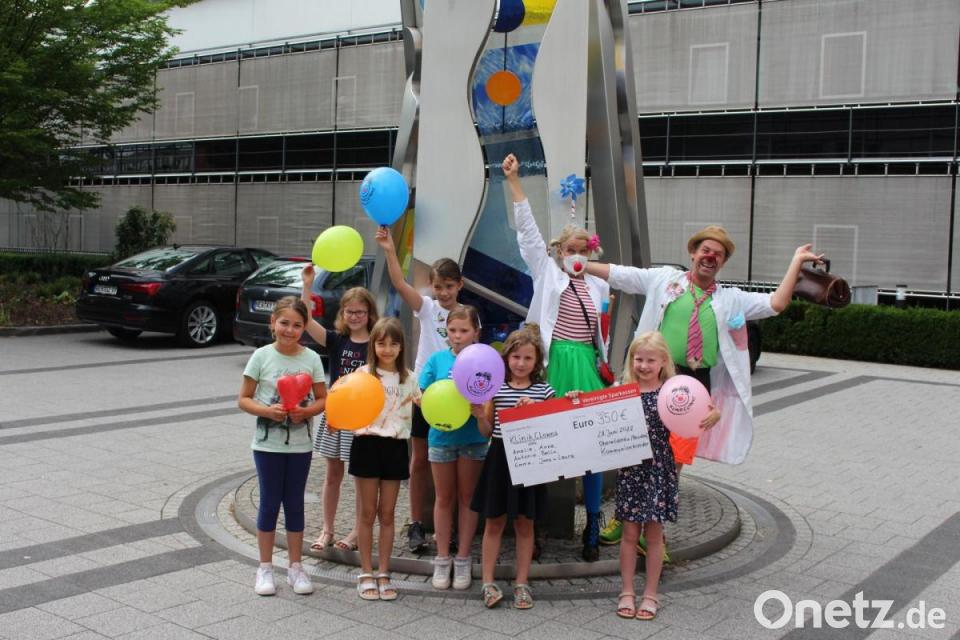 Sieben der Kommunionkinder aus Oberwildenau und Neudorf verzichteten auf die sonst üblichen Gegengeschenke und beschlossen, sich stattdessen für ihre Altersgenossen im Kinderkrankenhaus zu engagieren. So spendeten sie gemeinsam 350 Euro an die Klinik-Clowns, die mit ihren regelmäßigen „Visiten“ auf den Kinderstationen im Klinikum Weiden für Frohsinn sorgen. Am vergangenen Dienstag trafen sie die Clowns „Dr. Beppo“ und „Frau Dr. Trudi Eierfleck“ vor der Weidener Kinderklinik und überreichten ihnen ihre Spende. Die beiden Clowns freuten sich sehr, denn nur mit Hilfe von Spendengeldern aus der Region sind ihre regelmäßigen „Clownsvisiten“ bei den kleinen Patienten möglich. Jede Woche besuchen sie die Kinder in ihren Krankenzimmern und sorgen für eine wohltuende Ablenkung vom oft stark belastenden Klinikaufenthalt. Sie bringen Spaß und Freude, stärken die psychische Verfassung der kranken Kinder und können so viel Positives zum Gesundheitszustand und zu Heilungsprozessen beitragen. Dass schon Kinder sich für ihr Projekt einsetzen, finden „Dr. Beppo“ und „Frau Dr. Trudi Eierfleck“ großartig.