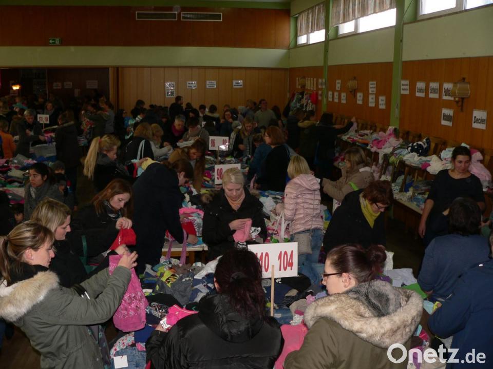 Schon seit über 20 Jahren finden die Basare zweimal jährlich statt. Und auch am Samstag waren etwa 400 Besucher mit großen Einkaufstüten und Körben gekommen, um den Nachwuchs auszustatten, mit allem, was man so braucht. Auch die Kleinen, die noch gar nicht auf der Welt sind, wurden schon mit dem Nötigsten versorgt. Um 12 Uhr hatte der Vorverkauf für die werdenden Muttis begonnen. Und wie der Zulauf zeigte, werden Kindergärten und Schulklassen auch in Zukunft gefüllt sein. Fein säuberlich sortiert nach Größen, gab es da so ziemlich alles, was die jungen Herren und Damen zum Aufwachsen brauchen. Babywäsche, Schuhe, Kleinkinderklamotten, Badewannen, jede Menge Spielsachen – Puzzles und Bücher meterhoch aufgetürmt – Faschingskostüme und Trachtengewänder. Während manchem Elternteil mit lauter Suchen, Schauen und Sortieren Schweißperlen auf der Stirn standen, waren die Dreikäsehochs im Schlepptau von den Spielsachen gar nicht mehr wegzukriegen. Auf der Bühne war alles aufgestellt, was Räder hat. Schaukelpferd, Rutscherauto oder Inline-Skater. Simone Ott und ihr rund 35-köpfiges Helferteam („Unterstützer werden immer gebraucht und sind jederzeit willkommen“) waren schwer im Einsatz, aber auch hochzufrieden mit dem Besuch. „Auch in Zeiten des Internets wollen die Käufer ihre Ware halt doch noch anschauen“. Und damit niemand umfiel, gab es zur Stärkung Kaffee und jede Menge Kuchen, der auch mitgenommen werden konnte. Der Erlös ist für einen gemeinnützigen Zweck in der Gemeinde, heuer will das Team unter anderem die Ministranten unterstützen, die eine größere Fahrt geplant haben. Der nächste Verkauf für Herbst und Winter ist für den 21. September geplant.