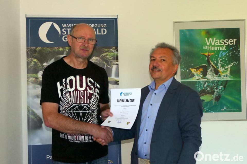 Heute regelt ein Team von drei Elektrikern mit dem Betriebsleiter den Betriebsablauf, dabei ist der Rat von Felix Schreffl immer noch unverzichtbar, wenn es um die Lösung komplexer Probleme geht. Im Auftrag des Verbandsvorsitzenden, Landrat Andreas Meier, überreichte Geschäftsstellenleiter Bernhard Eigner die Urkunde und dankte für den Einsatz in den vergangenen 40 Jahren herzlich. "Es bleibt zu hoffen, dass Ihnen die Arbeit beim Zweckverband immer noch viel Freude bereitet und Sie ihm weiterhin mit Rat und Tat noch viele Jahre zur Seite stehen", sagte Eigner