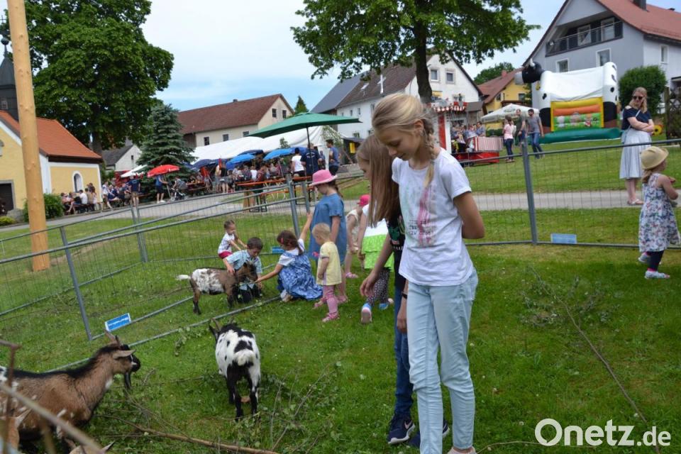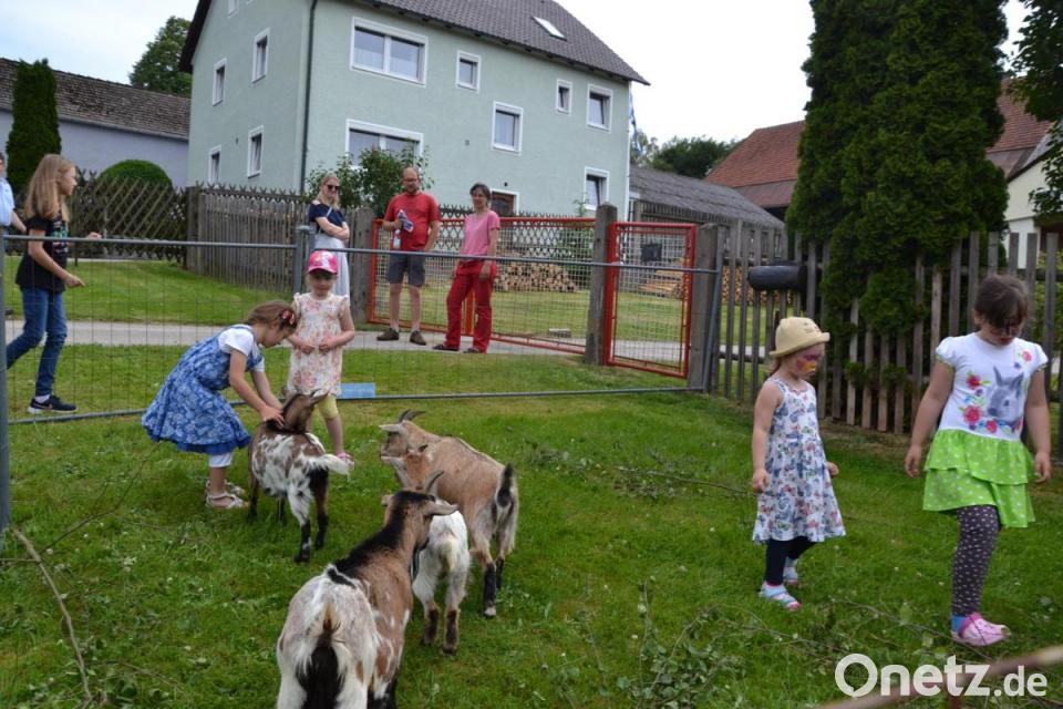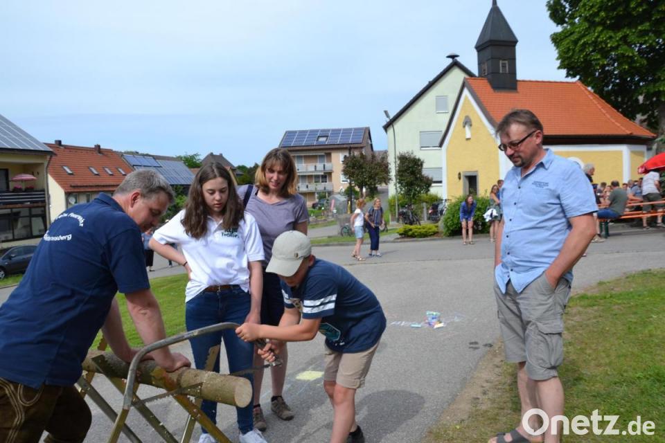 Das ganze Dorf half zusammen, freute sich Feuerwehr-Vorsitzender Hermann Ach. Besonders die Kinder genossen die autofreie Zone. Da gab es einen Streichelzoo mit Ziegen, ein Kinder-Karussell, eine Hüpfburg und Malkreiden zum Straßenmalen. Beim Kinderschminken bekamen die Mädchen und Buben Gesichter vom Tiger bis zum Schmetterling. Eine weitere Attraktion war das Absägen von Holz: Dabei galt es, möglichst nahe an 1000 Gramm zu kommen. Die Gewinnerin des Preises (50 Euro) war die neunjährige Julia Liegl mit ihrem Vater Thomas aus Moosbach. Sie hatten es geschafft, ein Holzstück mit einem Gewicht von genau einem Kilo abzusägen.