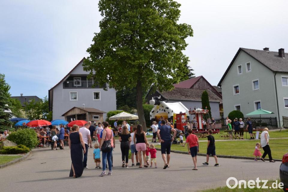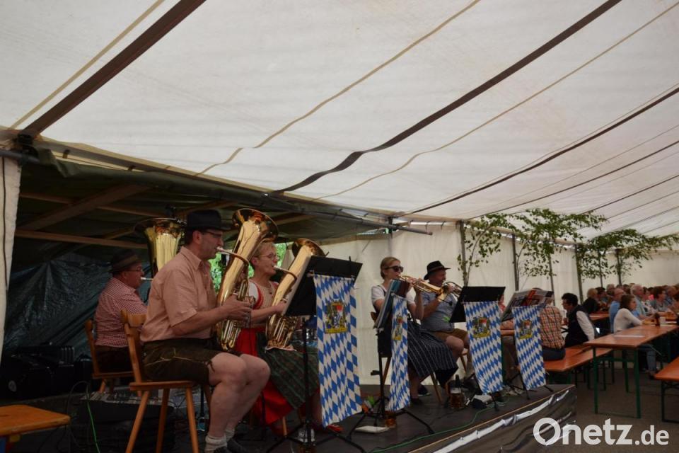 Am Dorfplatz an der Kapelle hatten Feuerwehr und Frauenstammtisch ein Zelt aufgebaut. Davor standen zahlreiche Tische und Bänke. Doch die meisten Festbesucher genossen es, im Freien zu sitzen. Den ganzen Nachmittag spielten die Straßenmusikanten böhmisch/bayrisch auf. Auch der „Böhmische Traum“ durfte zum Mitsingen nicht fehlen. Die Musiker Hans Maier und seine Frau Gabi Reitinger-Maier sowie Tochter Franziska hatten ein Heimspiel. Es gab Kaffee und Kuchen sowie deftige Schmankerln aus der Brotzeitbude.
