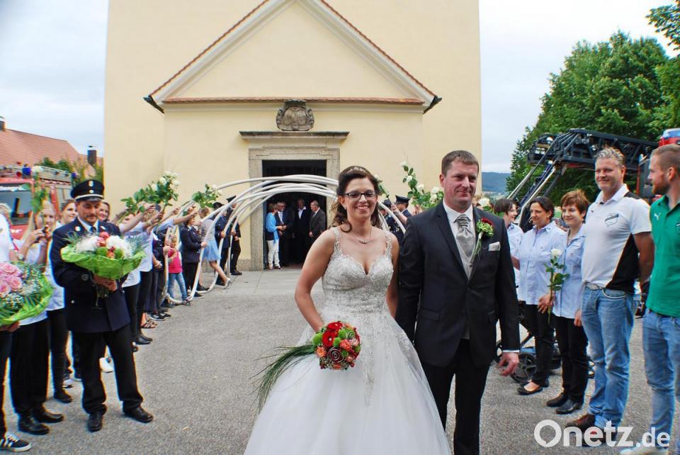 In der Kirche St. Sebastian auf der Kleinen Kappl gaben sich vor Pfarrer George Parankimalil die Einzelhandelskauffrau Daniela Fleischer und der Metallbauer Florian Dietl das Jawort. Vor der Kapplkirche musste das Brautpaar durch ein langes Spalier schreiten.