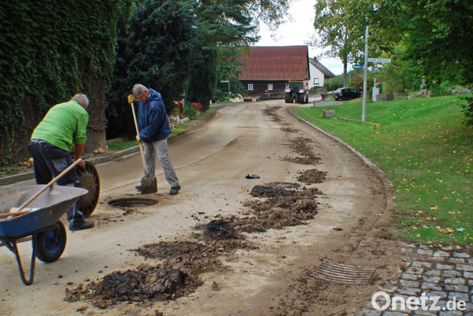 Die Bilder zeigen, dass in Ottengrün die Hauptstraße völlig verschlammt ist. Auch in Meyers Heimatort Wernersreuth heißt es "Land unter". Allerdings ist das Ausmaß dort nicht ganz so schlimm. Am späten Abend noch begannen die Aufräumarbeiten, am Montag rückten dann die Bauhof-Mitarbeiter aus, um die restlichen Schlammmassen zu beseitigen. "Es sind alle im Einsatz", erklärt Meyer. Die Zuläufe des Entwässerungssystems seien "total zugespült." Diese müssten nun wieder frei gemacht werden.