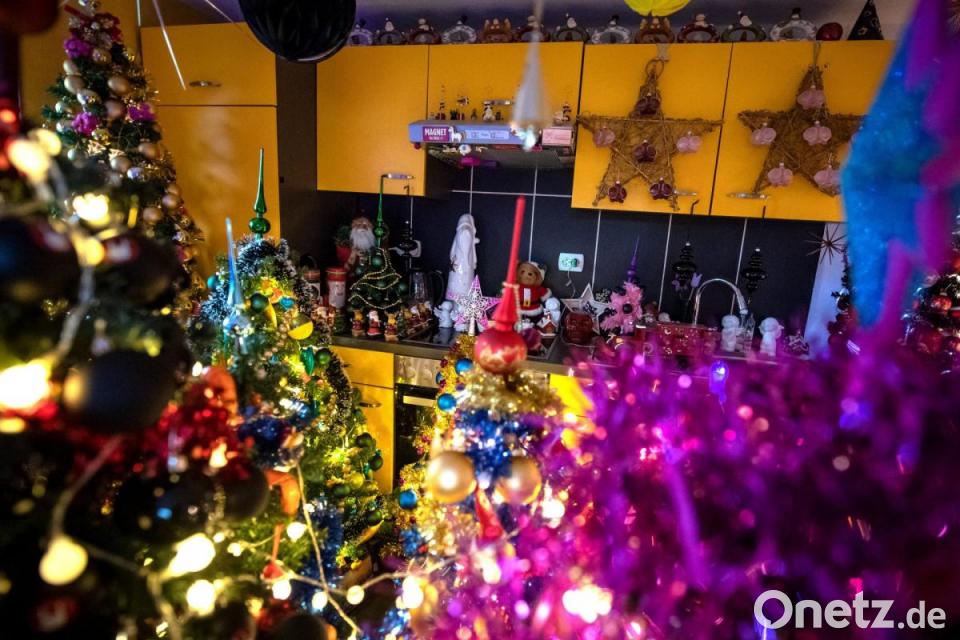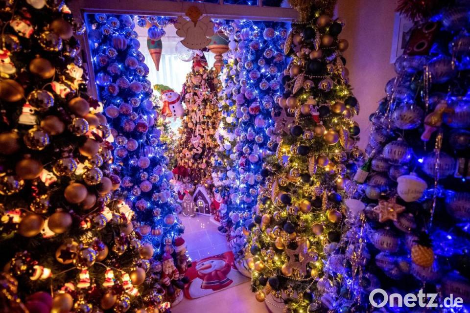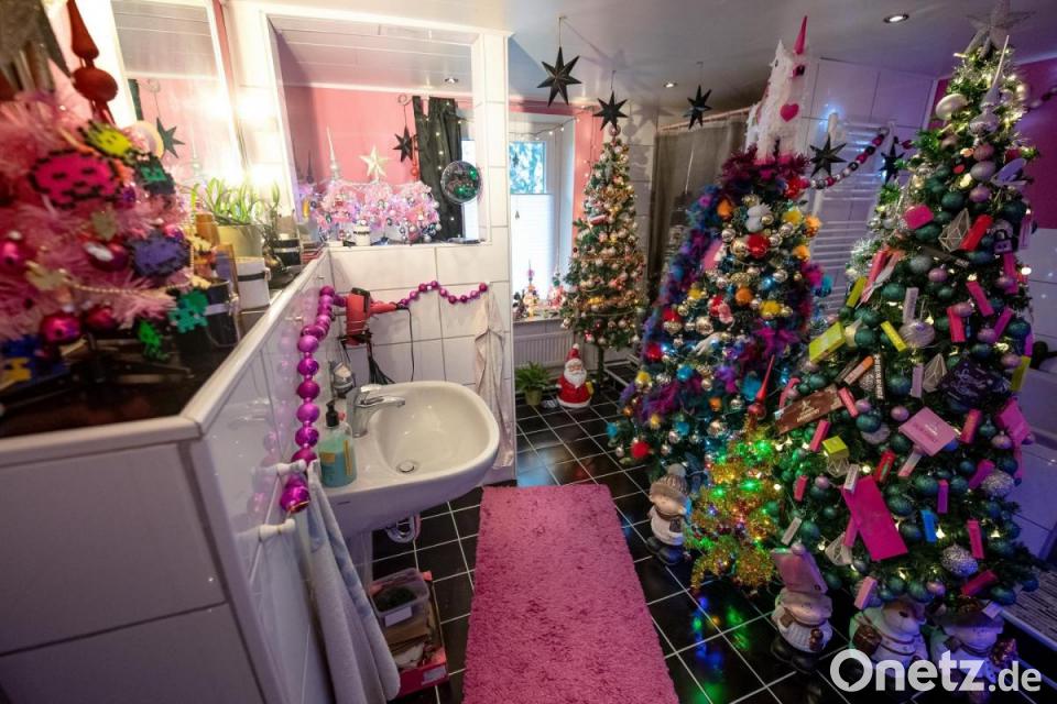 Alles fing ganz harmlos an mit einem Weihnachtsbaum im Wohnzimmer. "Dann kam einer in die Diele und den Flur, irgendwann ist es eskaliert", sagt Thomas Jeromin. Der Koch aus dem niedersächsischen Rinteln hat inzwischen rund 350 eigenhändig dekorierte Christbäume in seinem Wohnhaus - sie drängen sich selbst vor der Badewanne. Mit dem Schmücken beginnt er Anfang August. Der 53-Jährige hängt auch Superhelden-Figuren, Quietscheentchen oder Flamingos auf. Deko-Ideen und -Material sammelt er das ganze Jahr.