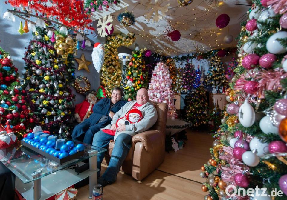 Am Dreikönigstag beginnt für die Jeromins das Abschmücken. Schon vorige Saison mit weniger Bäumen dauerte das sechs Wochen. "Meine Frau jammert dann immer und will, dass ich welche stehen lasse", erzählt er. Geht es darum, nicht wieder ab Sommer monatelang zu schmücken? Schließlich arbeiten beide Vollzeit. "Nein, wenn die Bäume weg sind, ist es auf einmal richtig dunkel, dann muss man das Licht anschalten." Die Zeit des Aufstellens und Dekorierens macht Thomas Jeromin ohnehin nichts aus. "Das ist zwar viel Arbeit, aber total beruhigend."