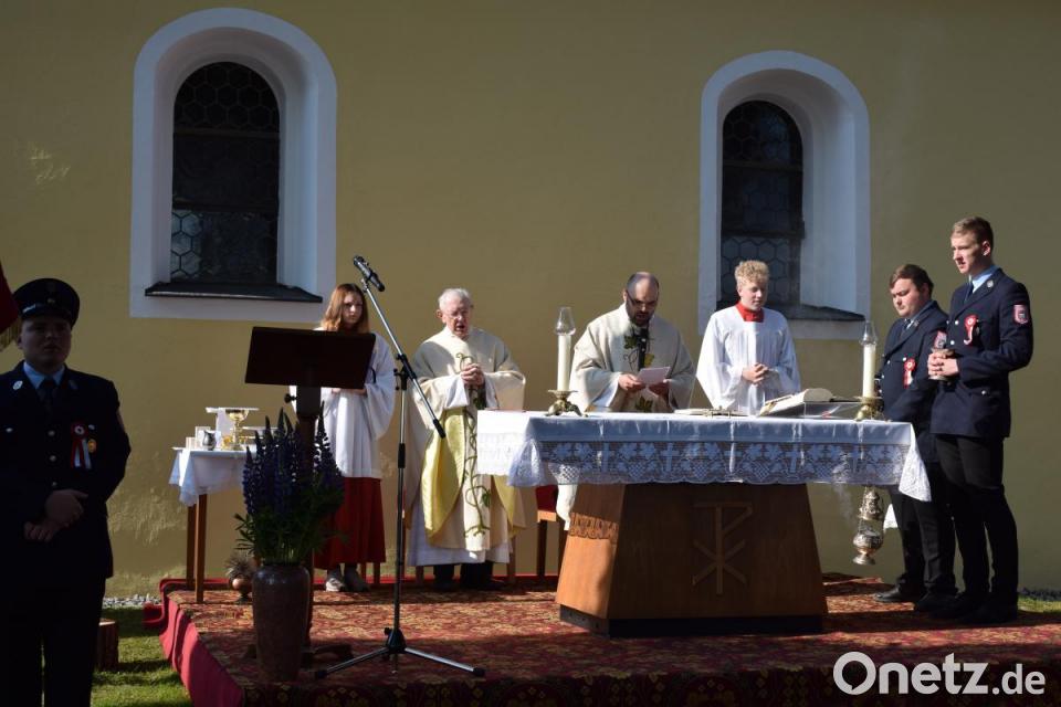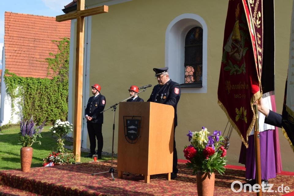 An die Lebenden richtete Pfarrer Hans Spitzhirn in seiner Predigt zum Festgottesdienst seine Worte. "Der Feuerwehrdienst ist angewandtes Christentum", hob er die Leistungen der Feuerwehr hervor. Gottes- und Nächstenliebe sind im Leitspruch der Feuerwehr - Gott zur Ehr, dem Nächsten zur Wehr - verankert und er bringt das zum Ausdruck, was eine funktionierende Dorfgemeinschaft auszeichnet. "Die Feuerwehrleute sind gut ausgebildet und behalten auch in schwierigen Situationen einen kühlen Kopf", lobte Pfarrer Spitzhirn das Engagement. Für ihn ist klar: "Feuerwehrleute geben der Nächstenliebe eine menschliche Gestalt."
