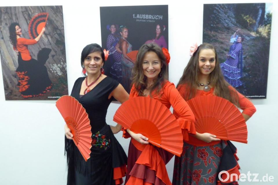 Am Donnerstagabend hatte die Gemeinde zur Vernissage geladen, und viele ließen sich das Ereignis nicht entgehen. Zum Ausstellungsmotto "Tanz auf dem Vulkan" passte die Eröffnung mit drei feurigen Flamencos der Gruppe "Sarao", die unter der Leitung von Esther Nawaro in die Weidener Tanzschule "Vézard" integriert ist. Katrin Bock, Jessica Völkl und Annette Huber, seit 15 Jahren aktiv, sind auch in tänzerischer Bewegung auf künstlerischen Fotos vor rotem Hintergrund im Vulkanmuseum abgebildet und treten mit ihrer Gruppe bei der "Vulkanweihnacht" am 1. Dezember auf.