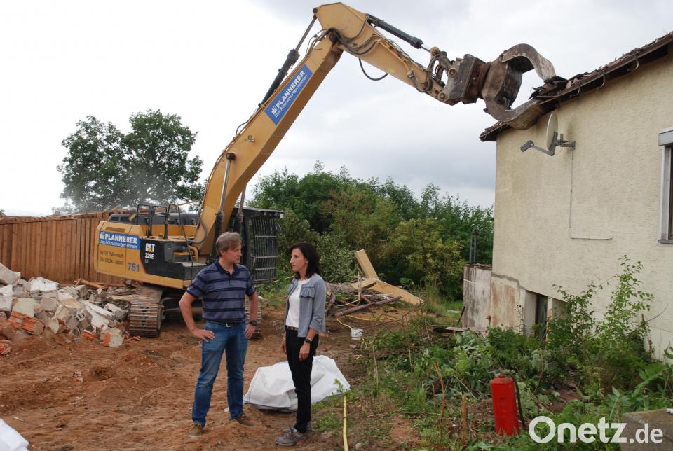 Parkstein. (bey) In dieser Woche haben die Abbrucharbeiten an der alten Villa in der Raiffeisenstraße begonnen. Im Jahr 1971 wurde das Wohnhaus samt Nebengebäuden errichtet. Jetzt muss es für den Neubau des geplanten Seniorenheimes weichen. Das Grundstück liegt im Baugebiet „Viehhof“. Die Abbrucharbeiten begleiten Markus Münchmeier vom Ingenieurbüro ME GmbH Erbendorf und Bürgermeisterin Tanja Schiffmann.
