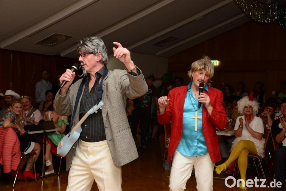 Um 22.15 Uhr wurde es spannend. Mario Piller stellte vor der Bühne ein „Minischlagzeug“ und zwei Mikrofone auf. SV-Chef Herbert Piller kündigte „zwei jung gebliebene ältere Herren“ an, die sich über Jahrzehnte in die Herzen der Frauen jeglichen Alters gesungen haben.