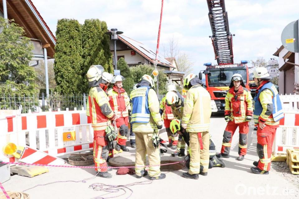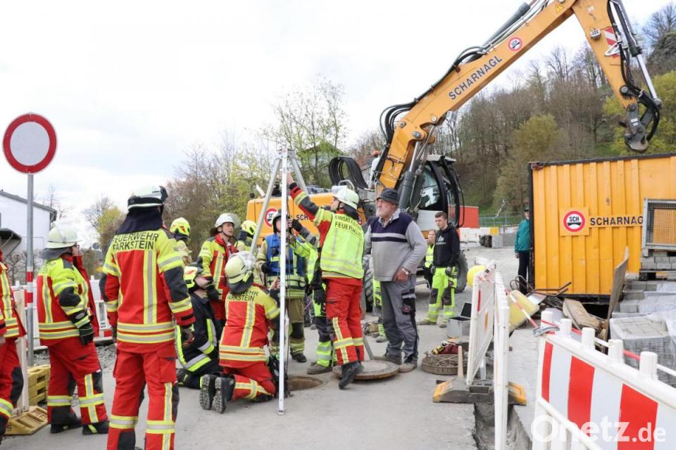 Gemeinsam mit der Firma Scharnagl aus Weiden konnten die Feuerwehren Altenstadt, Neustadt und Parkstein den Ernstfall üben. Wie die Feuerwehren mitteilen, wurde folgendes Szenario aufgebaut: Der Polier alarmierte an einem Nachmittag gegen 15 Uhr die Integrierte Leitstelle, dass sich ein Mitarbeiter bei Kanalbauarbeiten an einer Baustelle in Parkstein verletzt hat und in einem über drei Meter tiefen Schacht liegt. Die Feuerwehren wurden durch einen Einweiser in der engen Baustelle zum Patienten gelotst. Nach einer ersten Versorgung des Verletzten konnte die Absturzsicherungstruppe der Feuerwehr Altenstadt die Person im Schacht für die Rettung vorbereiten.
