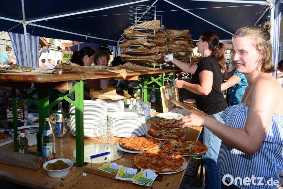 Im Garten und rund um das Landrichterschloss waren die Biertischgarnituren gut frequentiert. Drei Pizzaöfen liefen auf Hochtouren, damit über 400 vorbereitete Teigfladen möglichst schnell zum Gast kamen. Doch dies funktionierte prächtig.